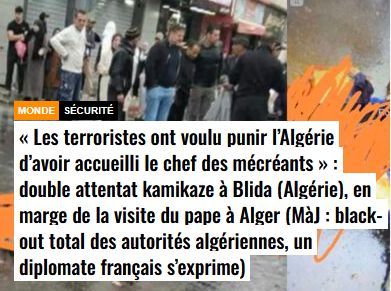 MISE A JOUR DU 15.04.2026 : Cette visite du Pape chez l'ennemi principal est quand même curieuse, comme ces attentats.