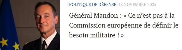 MISE A JOUR DU 24.10.2025 : Fabien MANDON était le chef d'état major particulier de Macronecu, il est possible que "Brigitte" l'ai pistonné... Les propos tenus sont assez stupéfiants, inquiétant, et méritent une analyse approfondie. Il s'agit en gros de préparer une guerre contre la Russie. Nul doute que dans son prochain bulletin STRATPOL, Xavier Moreau va décortiquer tout cela. Je sens qu'il y en a qui vont se faire traiter de gamelins