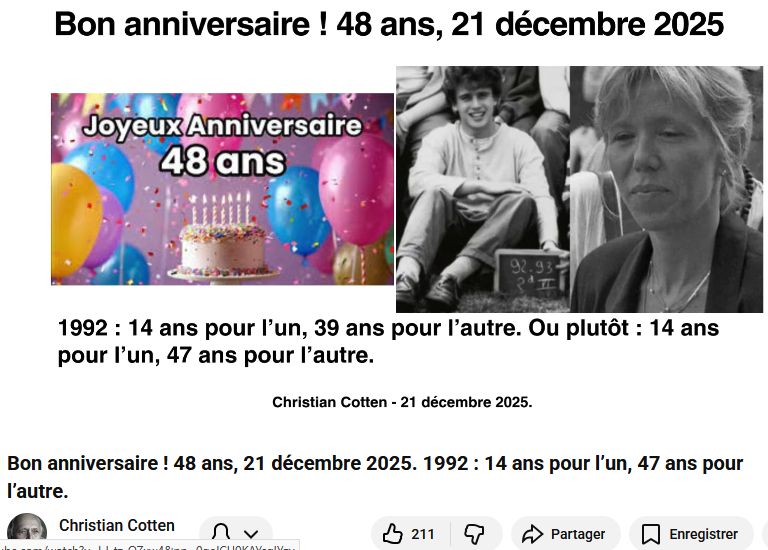 MISE A JOUR DU 18.12.2025 : J'émets également des doutes sur ses propos de la "belle jeunesse".