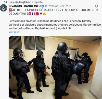 MISE A JOUR DU 17.02.2026 : Le proc a tenté de faire du Molins. Les miliciens communistes de Mélanchon et Arnaud sont forcément connus des RT, ou alors... Les interpeller quatre jours après leur a laissé largement le temps de nettoyer ordinateurs et téléphones. Du coup ça va être un festival c'est pas moi c'est les autres. C'est pas nouveau : https://fr.wikipedia.org/wiki/Who_Killed_Davey_Moore%3F N'oublions pas que les SA ont été créés en 1921 pour s'opposer aux milices communistes qui défilaient carrément dans les rues : https://fr.wikipedia.org/wiki/Sturmabteilung Voir Mein Kampf, c'est tout expliqué :