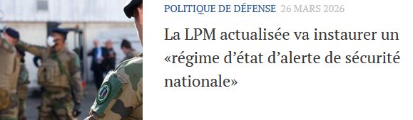 MISE A JOUR DU 27.03.2026 : Ben voyons. L'état profond et nos braves généraux prennent ils en compte la Guerre de France, déjà commencée ? Il est temps, car les méthodes de combat et les matériels et armements nécessaires sont sensiblement différents du combat de haute intensité ou d'OPEX.