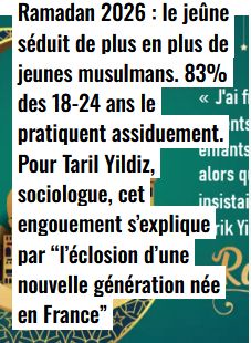 MISE A JOUR DU 03.02.2026 : D'un côté une Française de confession juive, pas touche, et de l'autre un Français originaire d'une société muz, quelque peu archaïque. La gauchiasserie, Rachid Miluch en tête, doit être furax. L'erreur fondamentale, c'est le calendrier lunaire. Le ramadan tombe le 17 février. Aïe.