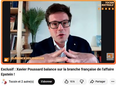 MISE A JOUR DU 17.02.2026 : Manifestement Xavier POUSSARD est un des mieux renseignés sur l'affaire Epstein pour lui avoir consacré des articles. Ce type était financé par des gens bien connus de la communauté -- dont une certaine Nadine -- qui n'existe pas, pour corrompre, "tamponner" avec des "pièges à miel". Il suffisait de grimper dans le Lolita Express et participer aux agapes sur son île pour se retrouver piégé. Il est clair que la Ghislaine Maxwell a intérêt à se mettre à table sérieusement pour éviter d'être suicidée en prison.