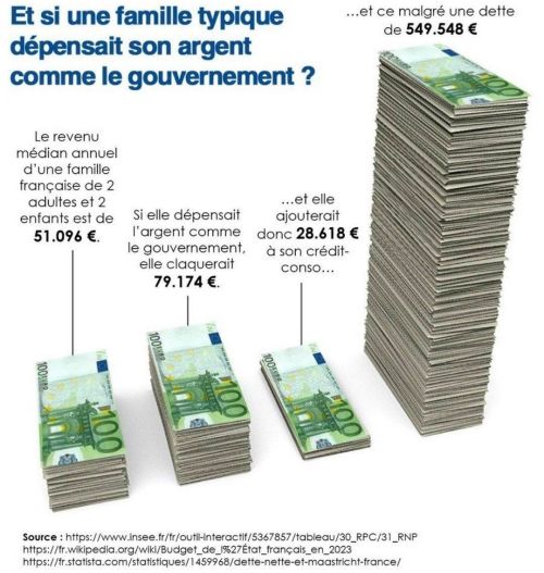 MISE A JOUR DU 05.01.2026 : Cette analogie explique très bien ce qui se passe. Le piège c'est se référer au PIB, alors que le trou dans la caisse est de plus de 30%. C'est intenable. Auparavant, le déficit était comblé par l'inflation et des dévaluations, pas mieux, mais moins douloureux :