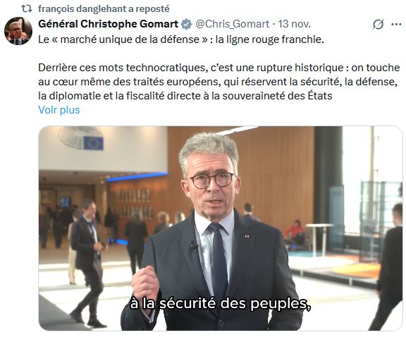 MISE A JOUR DU 24.10.2025 : Fabien MANDON était le chef d'état major particulier de Macronecu, il est possible que "Brigitte" l'ai pistonné... Les propos tenus sont assez stupéfiants, inquiétant, et méritent une analyse approfondie. Il s'agit en gros de préparer une guerre contre la Russie. Nul doute que dans son prochain bulletin STRATPOL, Xavier Moreau va décortiquer tout cela. Je sens qu'il y en a qui vont se faire traiter de gamelins