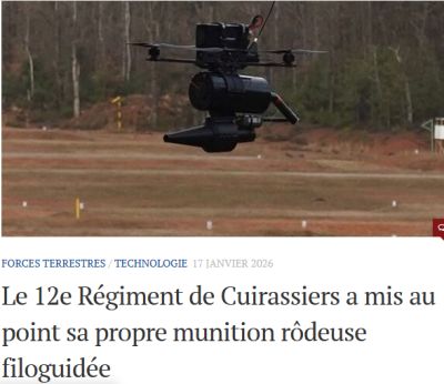 MISE A JOUR DU 19.01.2026 : Qu'un régiment de blindés mette au point un engin antichar est un paradoxe. La doctrine d'emploi des blindés va devoir passer en mode révisions déchirantes. Le peloton classique à trois chars va t'il est remplacé par un blindé accompagné d'un essaim de drones ?
